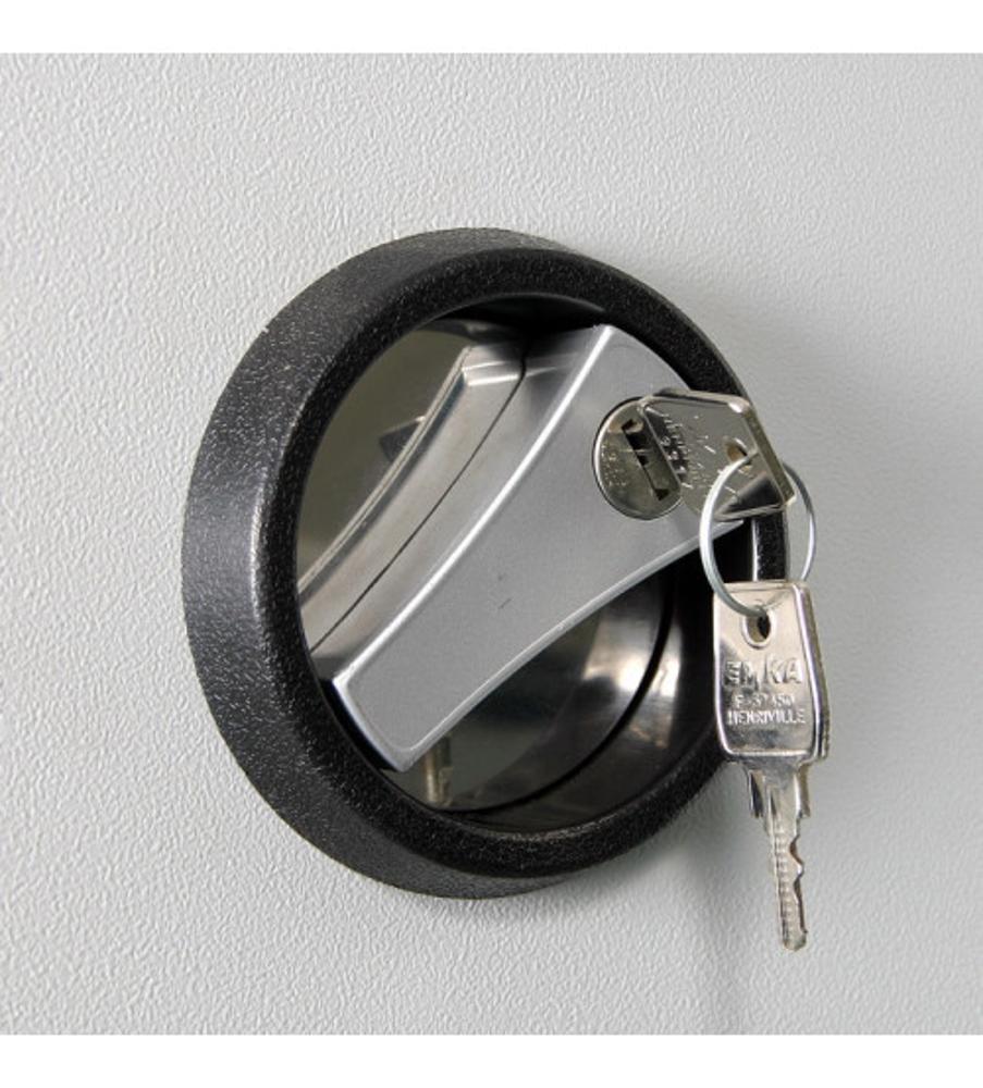 Шафа канцелярська для зберігання офісних та бухгалтерських документів в офісах, медичних закладах, фінансових установах, складах та ін. Це оптимальний вибір при великій місткості шафи. Додатково шафа може бути оснащена посиленими полицями, висувними рамками для підвісних картотечних файлів або висувними ящиками. Технічні характеристики: товщина металу - 0,8мм; Ключовий замок ЕМКА (Німеччина), 2 ключі в комплекті. Вертикальна ригельна система закривання з обертовим механізмом та ручкою.4 полиці, що регулюються с кроком 4 см. Допустиме навантаження на полку - 60 кг. Місткість (папок, товщиною 60 мм) - 100 шт. Стійке порошкове покриття. Колір - світло-сірий.