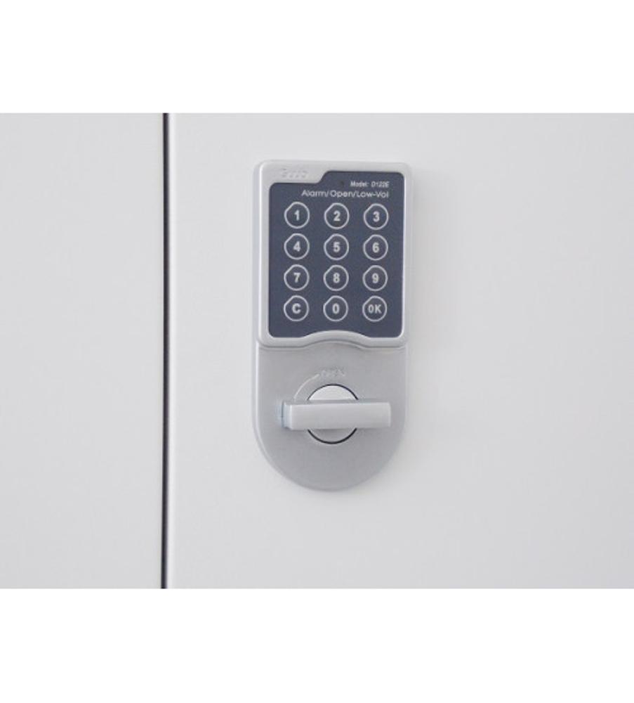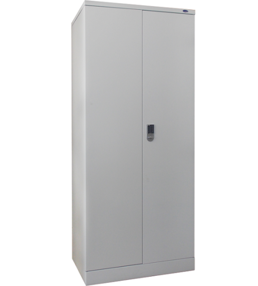 Шафа канцелярська для зберігання офісних та бухгалтерських документів в офісах, медичних закладах, фінансових установах, складах та ін. Це оптимальний вибір при великій місткості шафи. Додатково шафа може бути оснащена посиленими полицями, висувними рамками для підвісних картотечних файлів або висувними ящиками. Технічні характеристики: товщина металу - 0,8мм; Електронний кодовий замок. Вертикальна ригельна система закривання з обертовим механізмом та ручкою.4 полиці, що регулюються с кроком 4 см. Допустиме навантаження на полку - 60 кг. Місткість (папок, товщиною 60 мм) - 100 шт. Стійке порошкове покриття. Колір - світло-сірий.